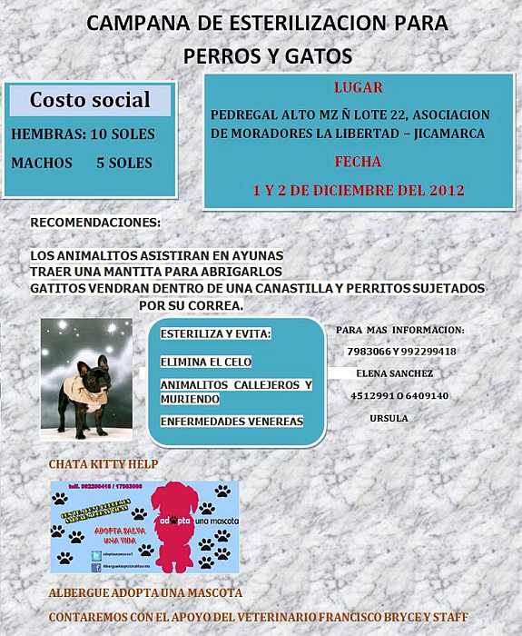 REQUISITOS Y RECOMENDACIONES PARA ANTES Y DESPUES DE ESTERILIZAR/CASTRAR A TU MASCOTA en el muro de la página.